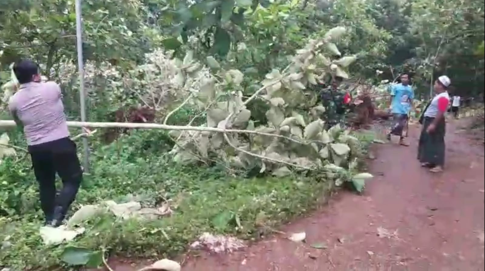 Tak lama setelah kejadian, personel Polsek Guluk-Guluk bersama Koramil Guluk-Guluk dan perangkat desa bergerak cepat ke lokasi. Aparat bersama warga bahu-membahu mengevakuasi pohon tumbang, membersihkan material bangunan, serta memastikan jalur transportasi desa kembali bisa dilalui.