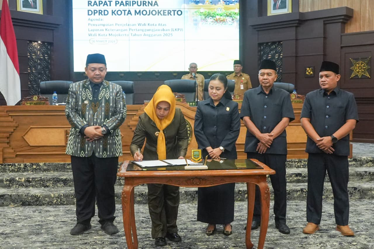 Hal tersebut disampaikan Wali Kota Mojokerto, Ika Puspitasari, dalam rapat paripurna penyampaian Laporan Keterangan Pertanggungjawaban (LKPJ) Tahun Anggaran 2025 di Kantor DPRD Kota Mojokerto, Senin (30/3/2026).