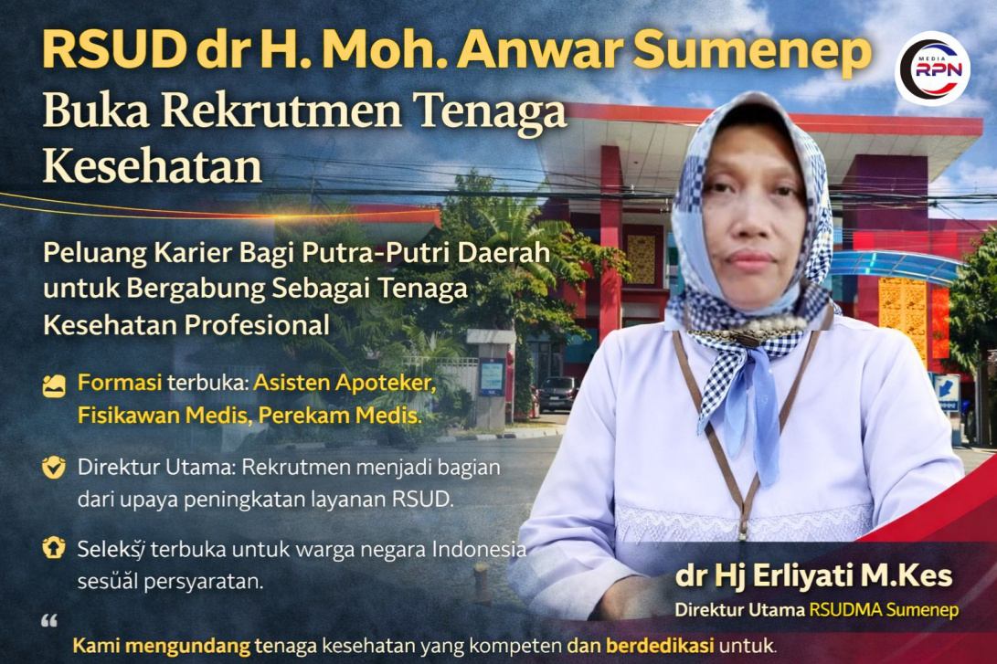 Sumenep,RPN-Rumah Sakit Umum Daerah dr. H. Moh. Anwar (RSUDMA) Sumenep kembali membuka peluang bagi masyarakat untuk bergabung sebagai tenaga kesehatan profesional. Rekrutmen ini menjadi bagian dari upaya peningkatan kualitas pelayanan kesehatan kepada masyarakat.