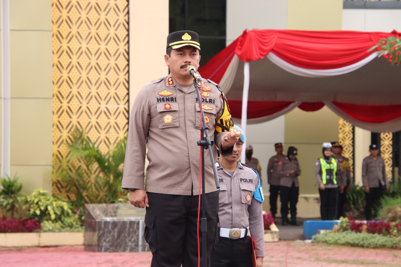 Gelar apel pengamanan malam takbiran dipimpin langsung Kapolres Sumenep AKBP Henri Noveri Santoso.,S.H.,S.I.K.,M.M bertempat di lapangan apel Tribrata Polres Sumenep Jl Urip Sumoharjo No 35 Desa Pabian Kecamatan Kota Sumenep Kabupaten Sumenep