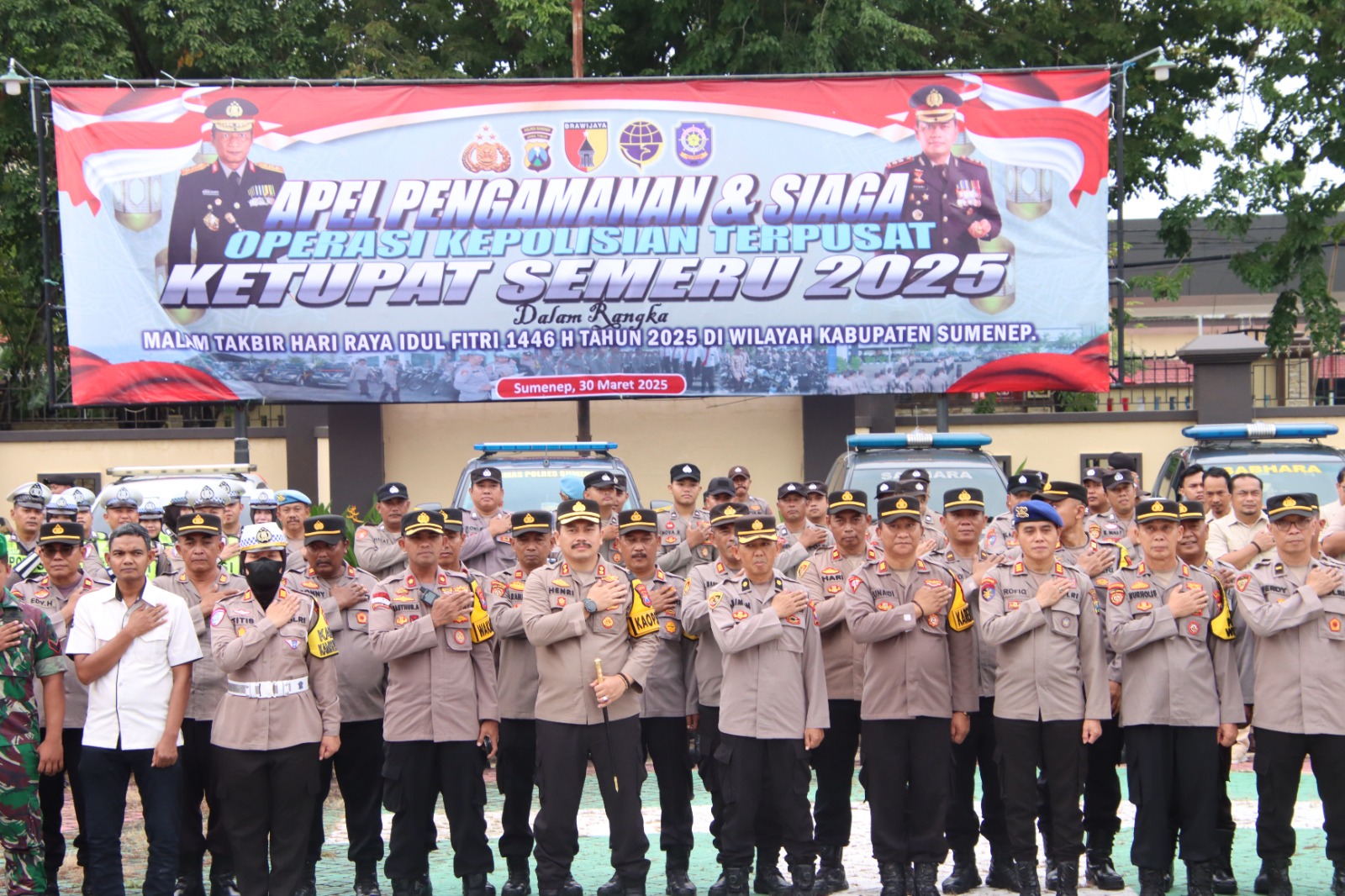 Sumenep,RPN-Polres Sumenep gelar apel siaga Pengamanan dan Siaga Operasi Kepolisian Terpusat Ketupat Semeru 2025 dalam rangka malam takbir hari Raya idul Fitri 1446 H Tahun 2025 di wilayah Kabupaten Sumenep. Minggu (30/03/2025).