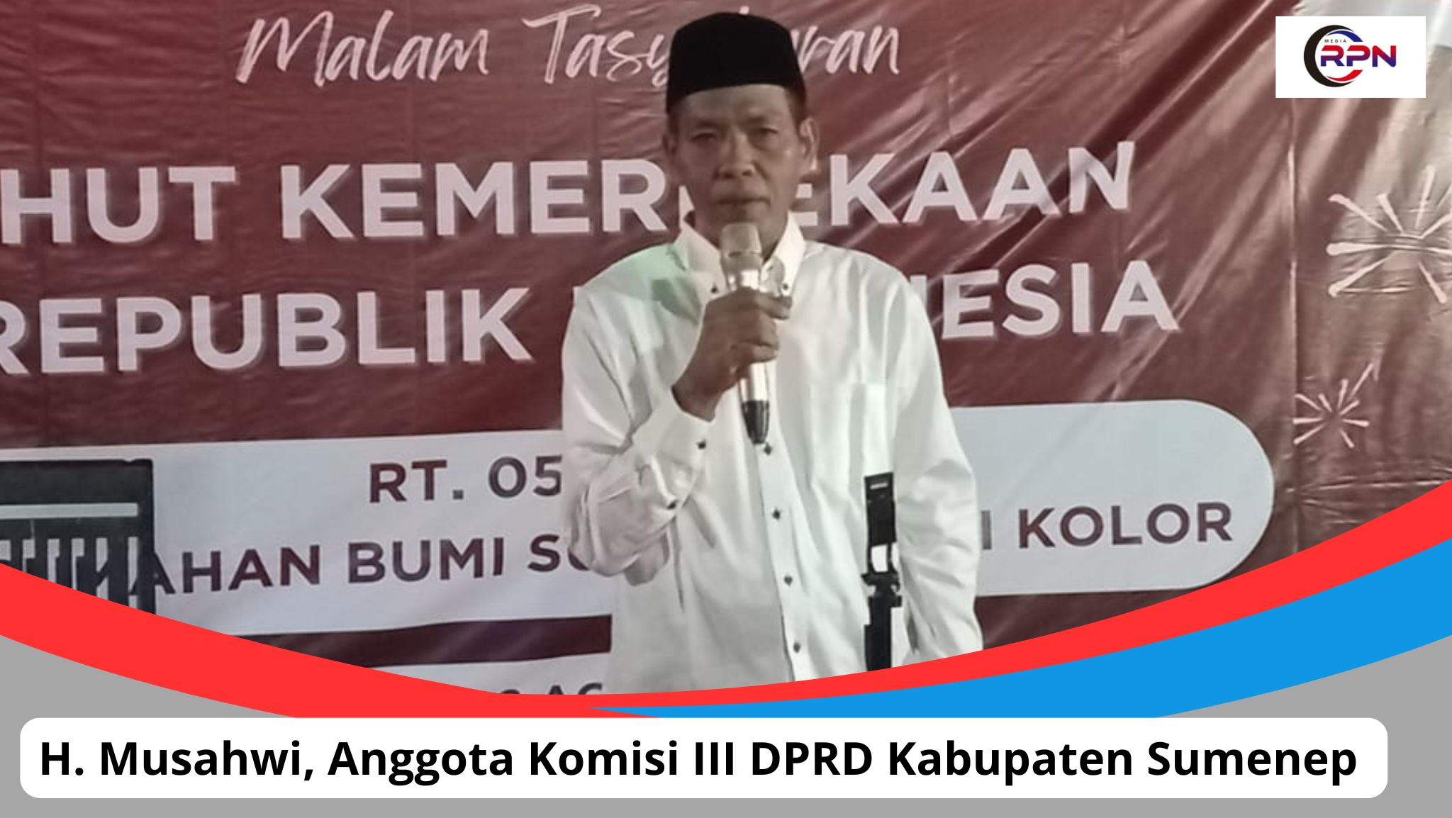 Dalam kesempatan itu, H. Musahwi, Anggota Komisi III DPRD Kabupaten Sumenep, hadir dan memberikan pesan mendalam kepada warga. Ia menekankan pentingnya rasa syukur atas kemerdekaan yang telah diperjuangkan oleh para pahlawan bangsa.
