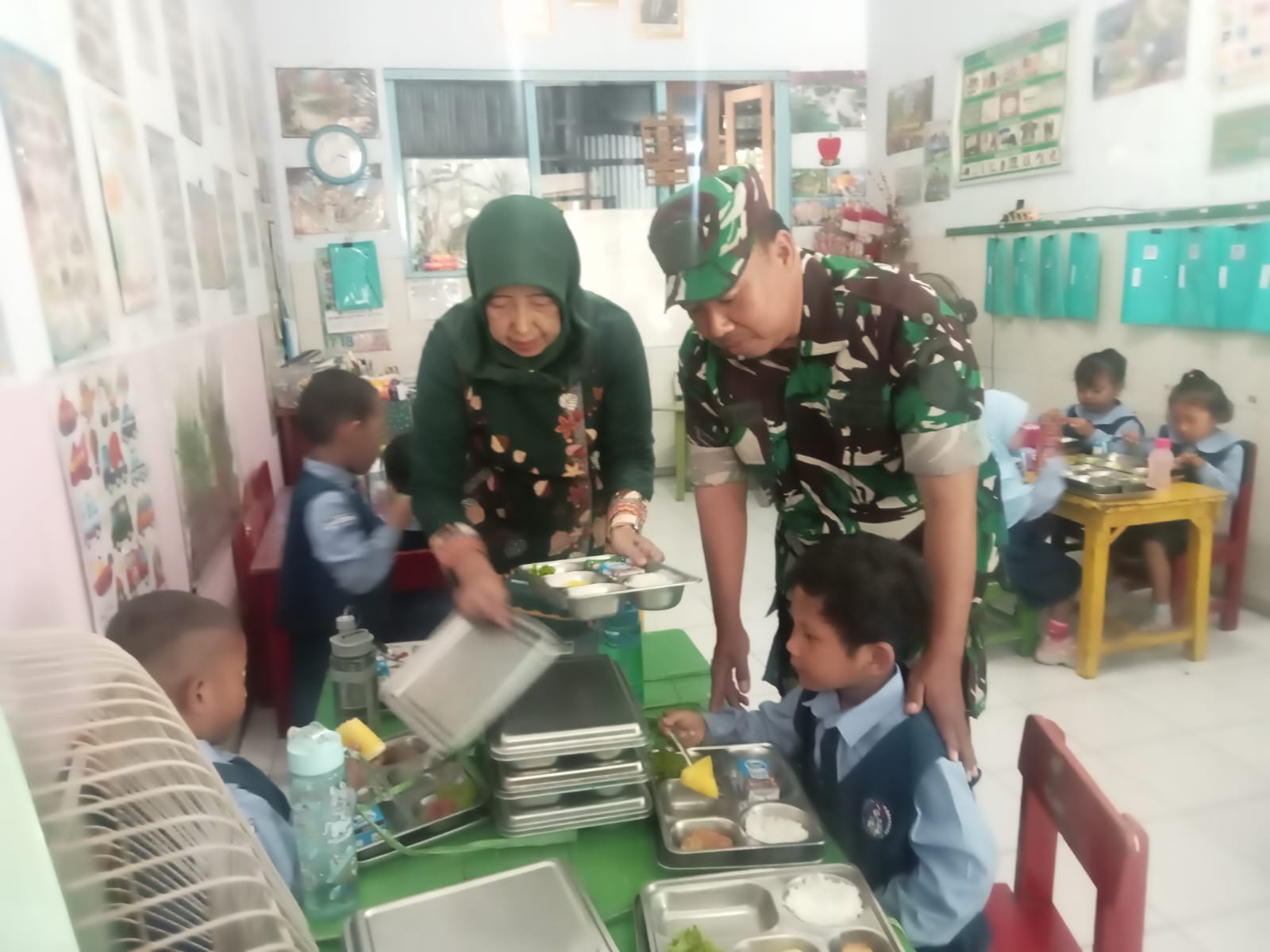 Lebih lanjut, Dandim menegaskan bahwa program MBG ini sejalan dengan komitmen TNI dalam mendukung kebijakan pemerintah dalam meningkatkan kualitas sumber daya manusia sejak usia dini. Kehadiran Babinsa di tengah siswa dan tenaga pendidik juga memperkuat kedekatan emosional antara TNI dan masyarakat.
