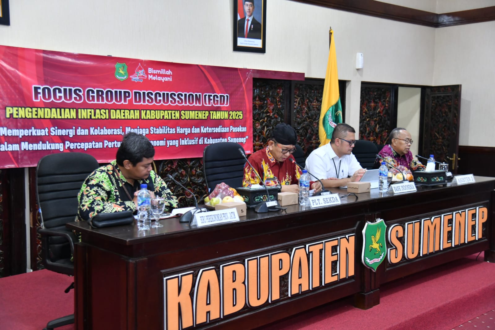 Sumenep,RPN-Pemerintah Kabupaten (Pemkab) Sumenep melalui Bagian Perekonomian dan Sekretariat SDA Daerah menggelar Focus Group Discussion (FGD) Pengendalian Inflasi Daerah di Ruang Rapat Graha Arya Wiraraja, lantai II Kantor Bupati, Kamis (18/9/2025).