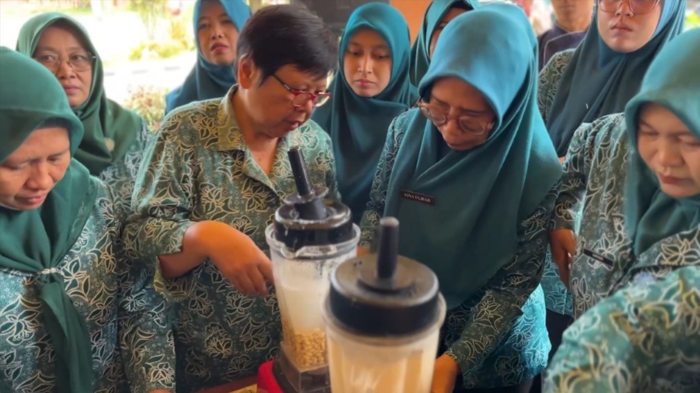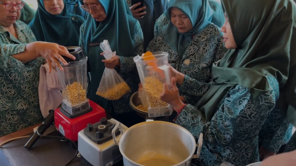 Lebih lanjut, Lina menyampaikan bahwa pelatihan ini memiliki dua tujuan utama. Yaitu untuk meningkatkan keterampilan para kader PKK dalam pengolahan bahan pangan lokal, serta untuk mendorong ekonomi keluarga melalui potensi usaha rumahan berbasis olahan kedelai seperti tahu, tempe, susu kedelai, hingga makanan ringan lainnya.