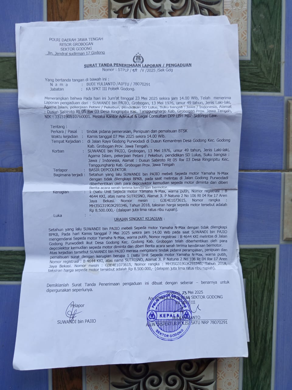 Korban Penarikan Motor di Grobogan Sebut Polisi Minta Cabut Laporan